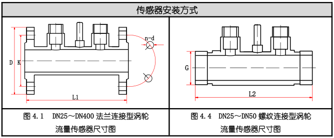 五、智能氣體渦輪流量計尺寸參數