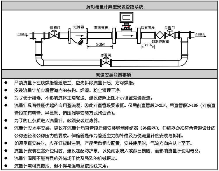 流量計雖結構很堅固,但應選擇安裝在振動或撞擊小的👼🏾場所。如确須将流量計裝在振動較大的管道上,需加設管😁道支撐。